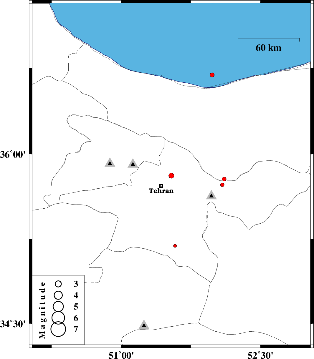 | 2015/06/03 | 13:21:05.1 | 17:51:05.1 | 36.69 | 51.98 | 14 | ML:2.1 | Caspian Sea, 14 km North of Nur | ||