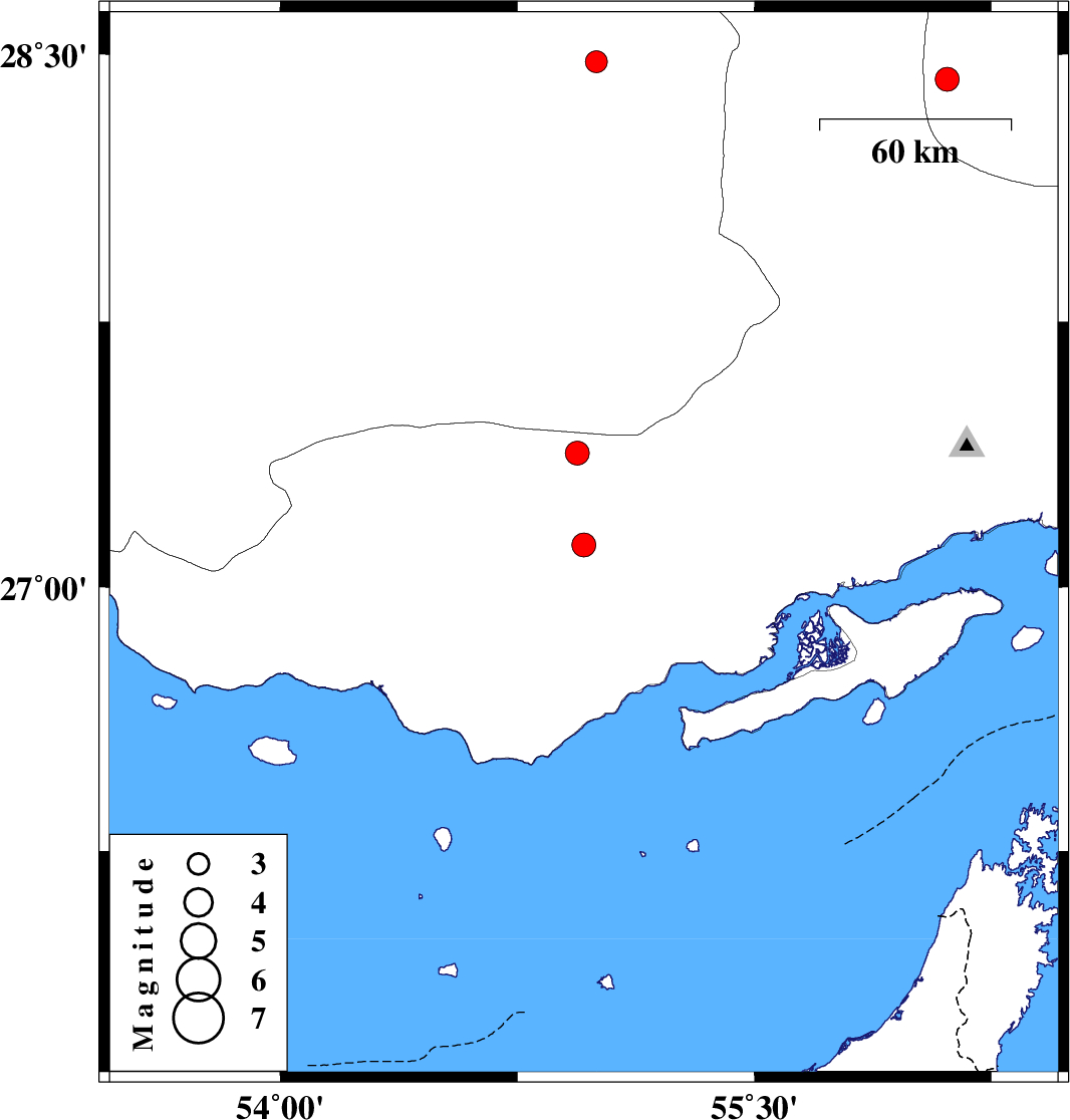 | 2015/05/30 | 14:22:12.0 | 18:52:12.0 | 28.48 | 55 | 17 | ML:3.1 | Fars Province, 54 km South-East of Darab |