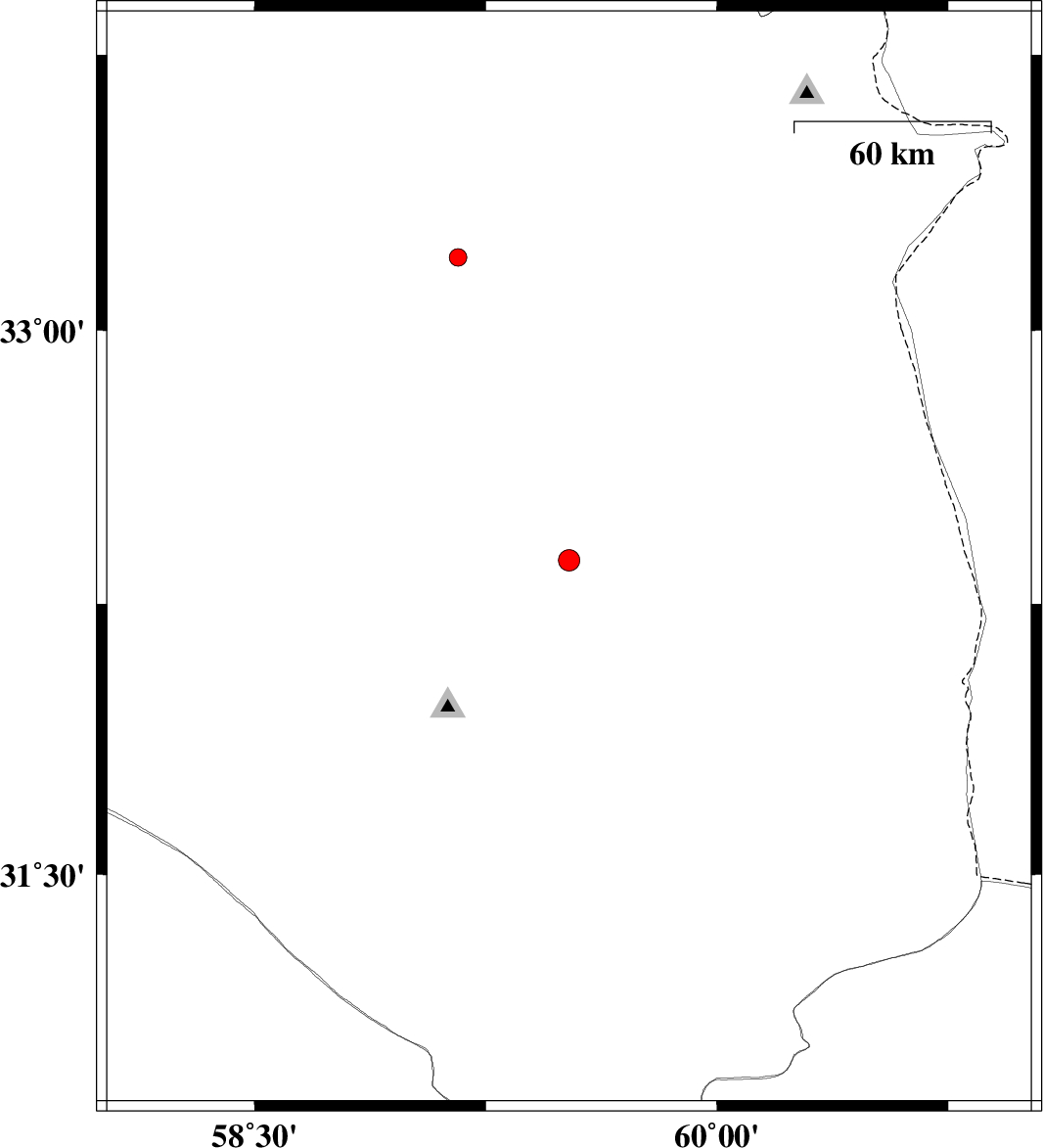 | 2015/06/28 | 13:38:53.4 | 18:08:53.4 | 32.37 | 59.52 | 14 | ML:3.1 | Khorasan(south) Province, 38 km South-West of Sarbisheh | ||