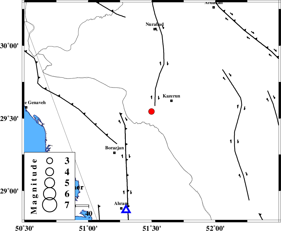 | KAZERUN_F (Length: 96 km) , Distance to epicenter: 5 km | |