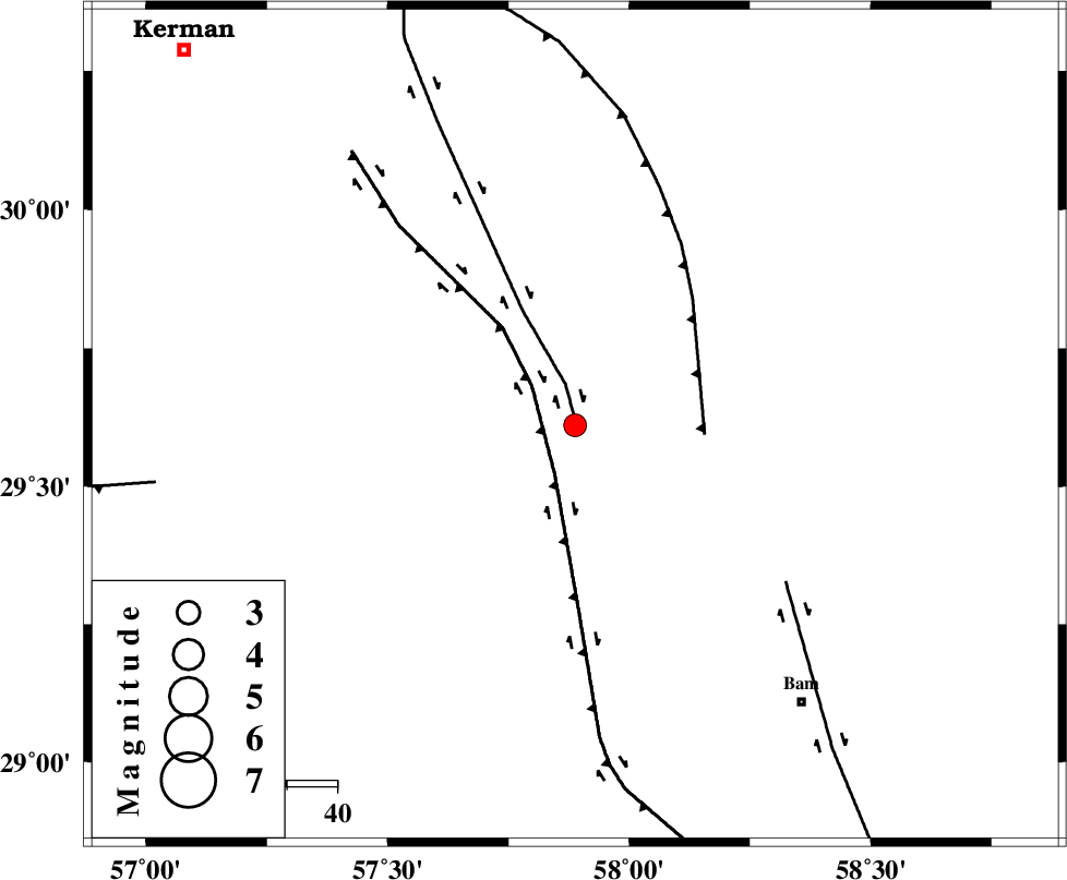 GOLBAF_SIRCH_F (Length: 114 km) , Distance to epicenter: 1 km | |