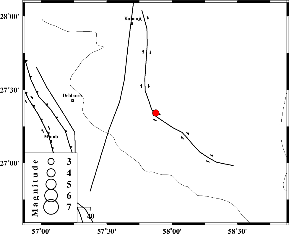 ZENDAN_MINAB_F_Z1 (Length: 183 km) , Distance to epicenter: 63 km | |
