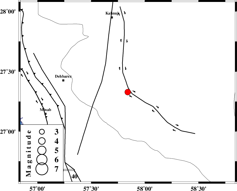 ZENDAN_MINAB_F_Z1 (Length: 183 km) , Distance to epicenter: 59 km | |