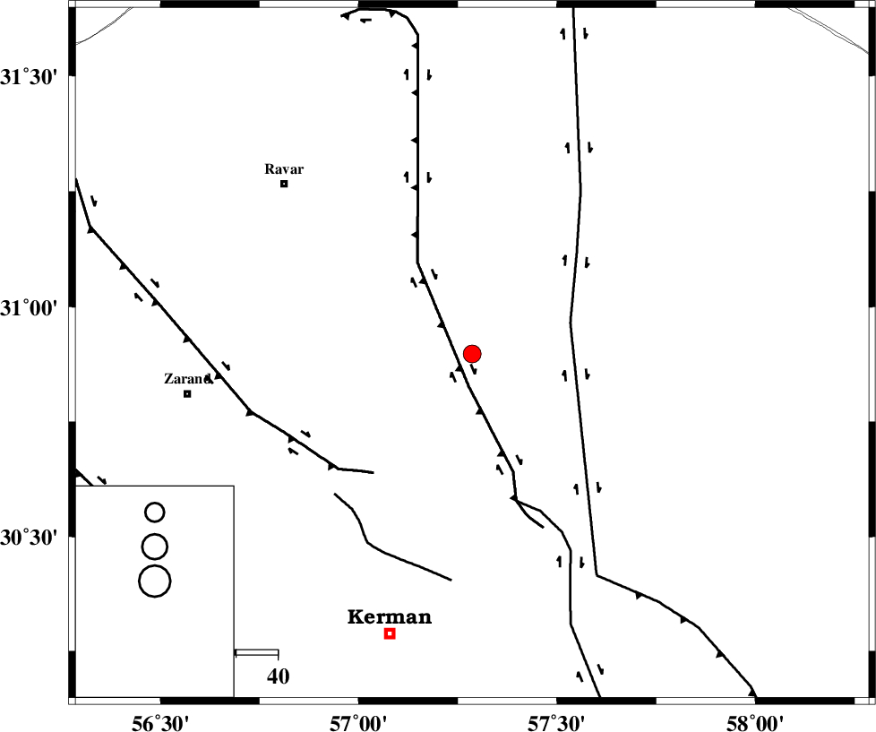 GOLBAF_SIRCH_F (Length: 114 km) , Distance to epicenter: 37 km | |