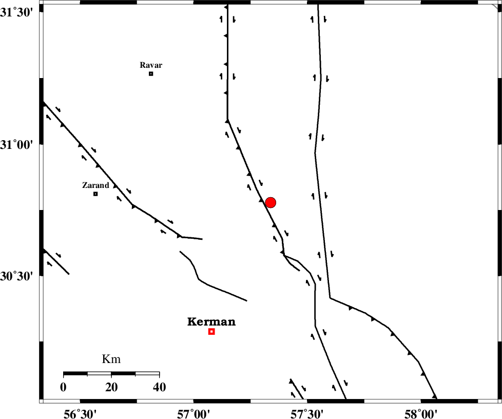 GOLBAF_SIRCH_F (Length: 114 km) , Distance to epicenter: 23 km | |