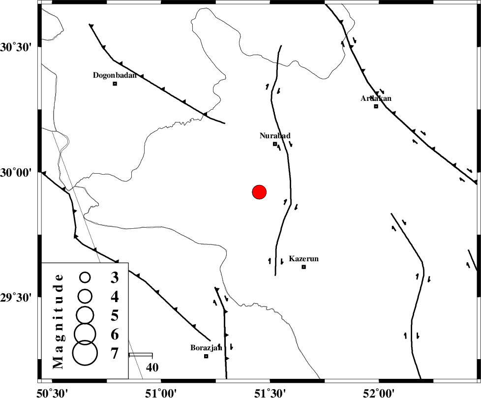 KAZERUN_F (Length: 96 km) , Distance to epicenter: 15 km
