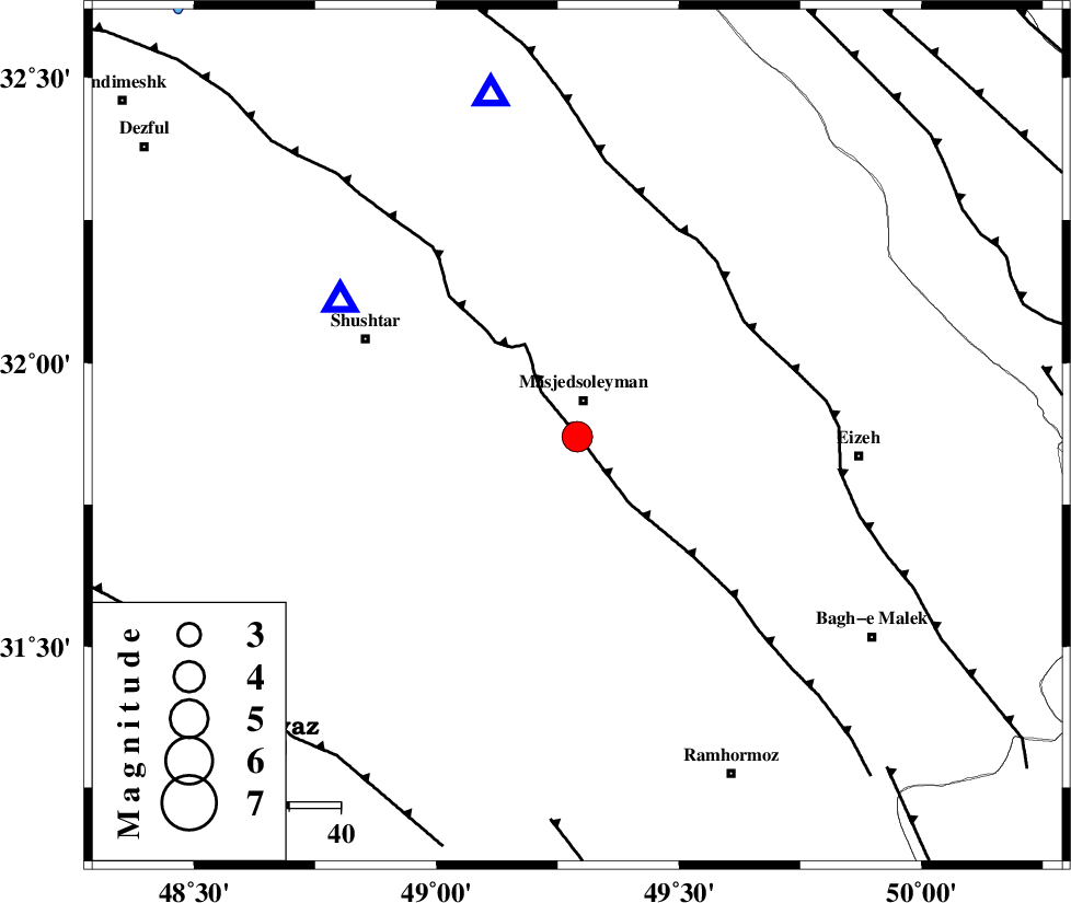 AGHAJARI_F (Length: 88 km) , Distance to epicenter: 75 km | |