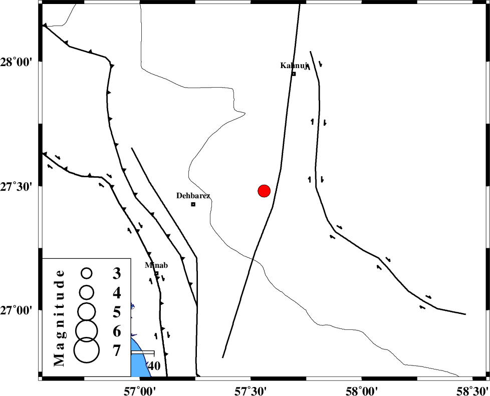 ZENDAN_MINAB_F_Z1 (Length: 183 km) , Distance to epicenter: 41 km