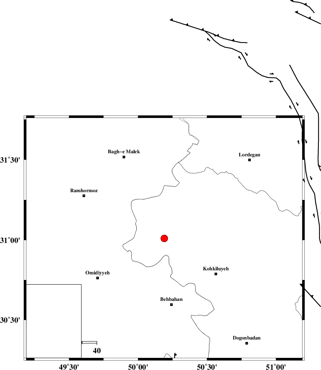 DEZFUL_EMBAYMENT (Length: 228 km) , Distance to epicenter: 40 km | |