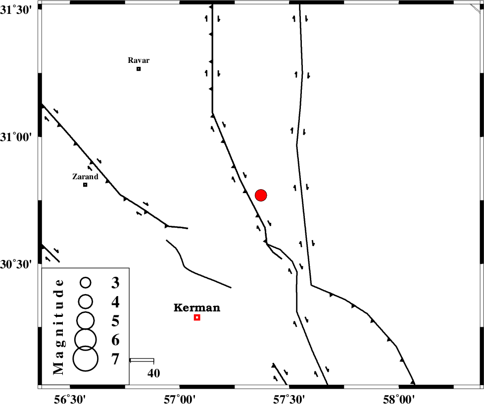 GOLBAF_SIRCH_F (Length: 114 km) , Distance to epicenter: 22 km | |
