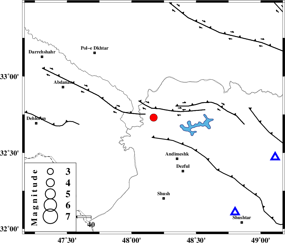 DEZFUL_EMBAYMENT (Length: 228 km) , Distance to epicenter: 14 km | |