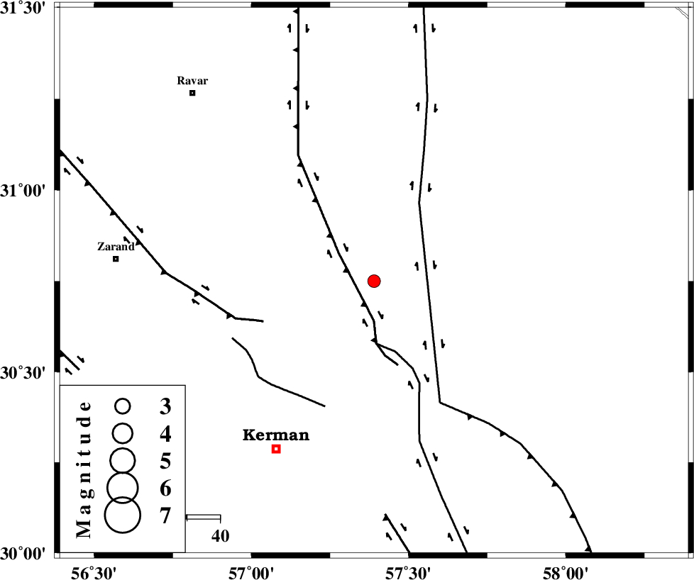 GOLBAF_SIRCH_F (Length: 114 km) , Distance to epicenter: 19 km | |