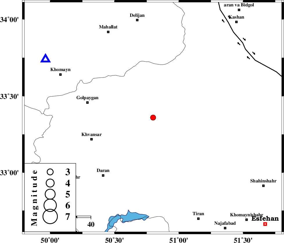 KASHAN_F (Length: 44 km) , Distance to epicenter: 83 km