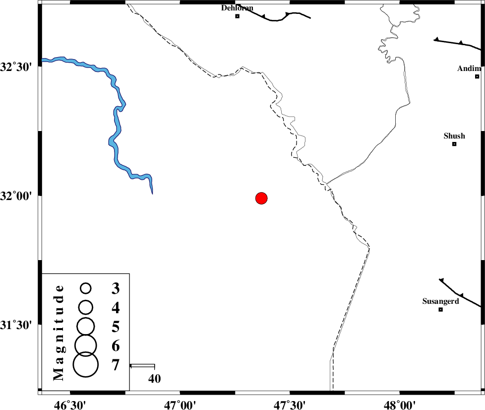 DEZFUL_EMBAYMENT (Length: 228 km) , Distance to epicenter: 100 km | |