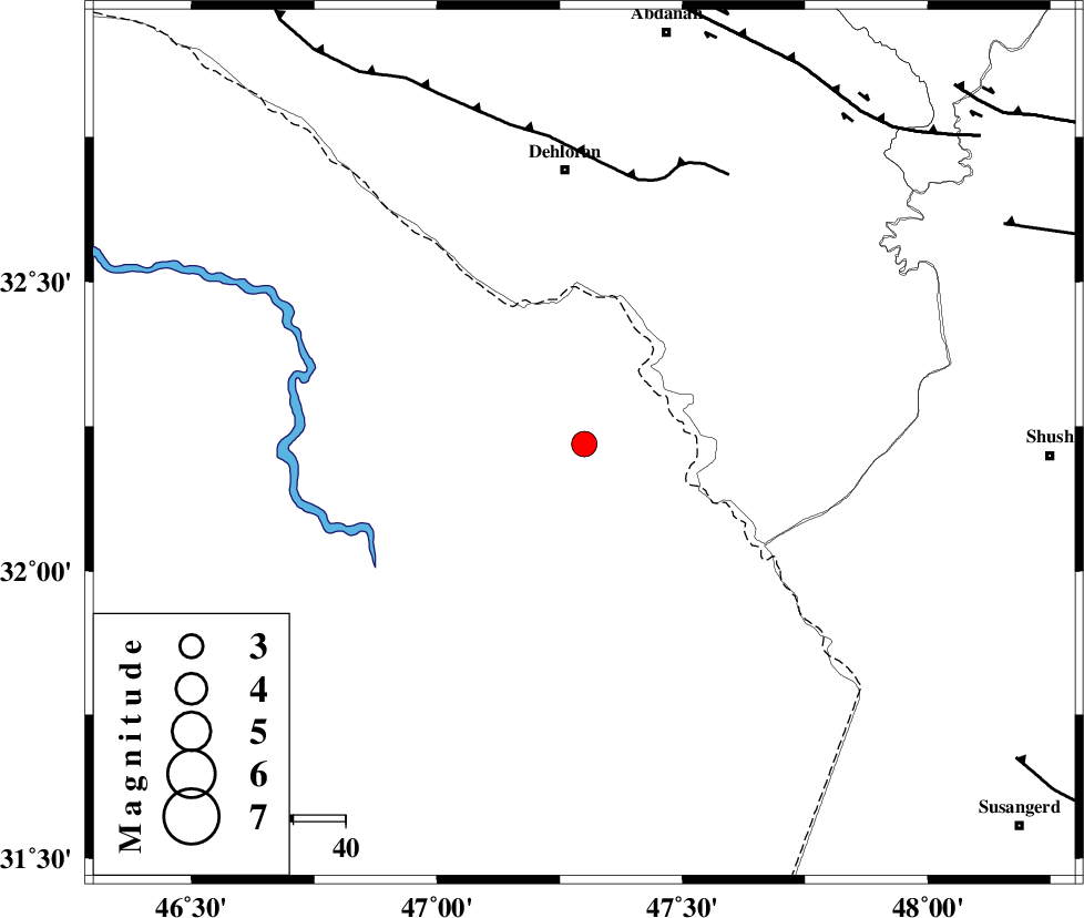 DEZFUL_EMBAYMENT (Length: 228 km) , Distance to epicenter: 91 km | |