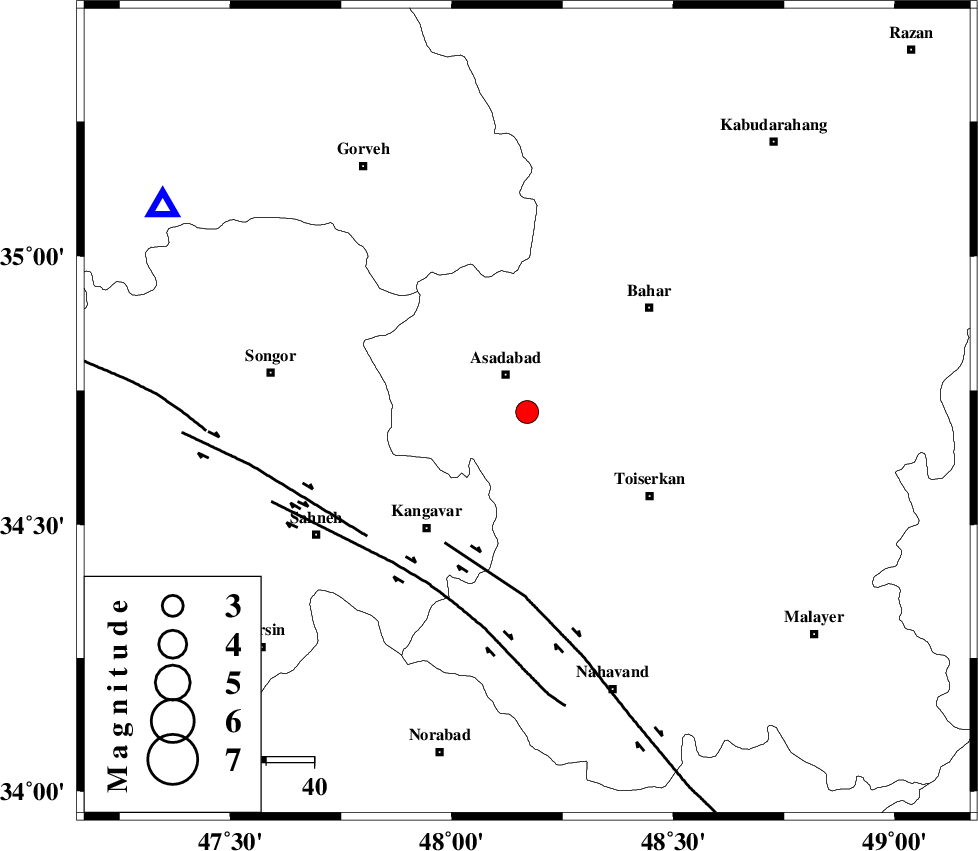 NAHAVAND_F (Length: 102 km) , Distance to epicenter: 32 km | |