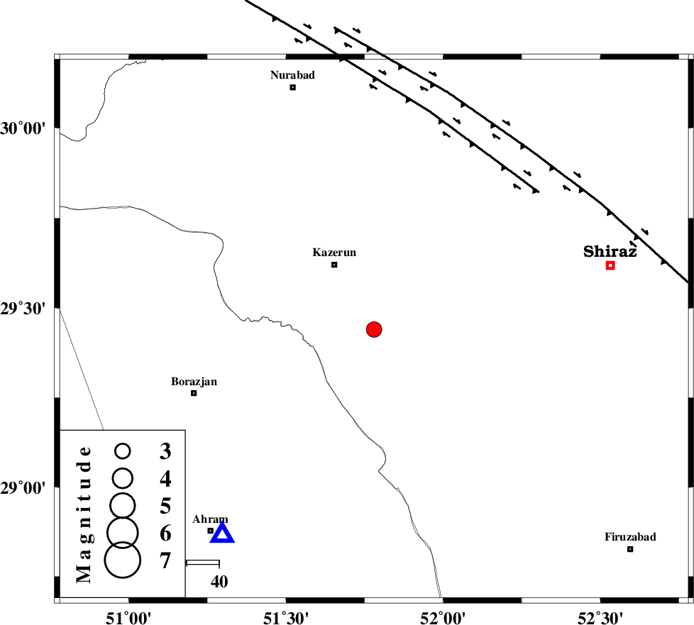KAZERUN_F (Length: 96 km) , Distance to epicenter: 30 km | |