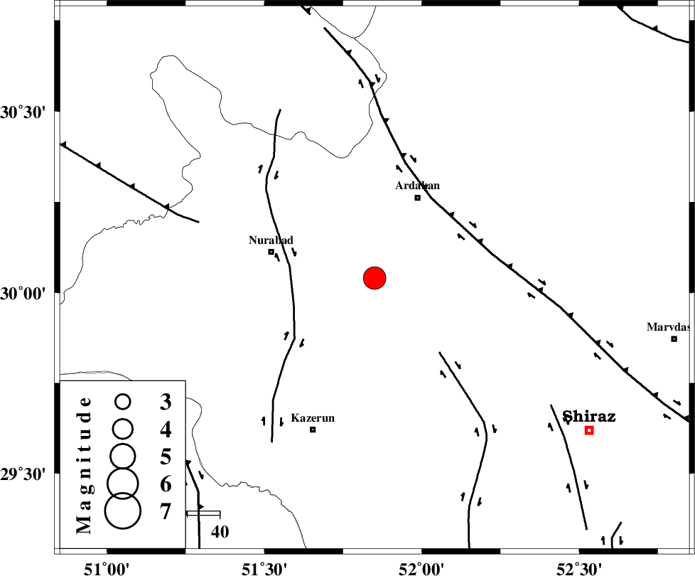 KAZERUN_F (Length: 96 km) , Distance to epicenter: 26 km | |