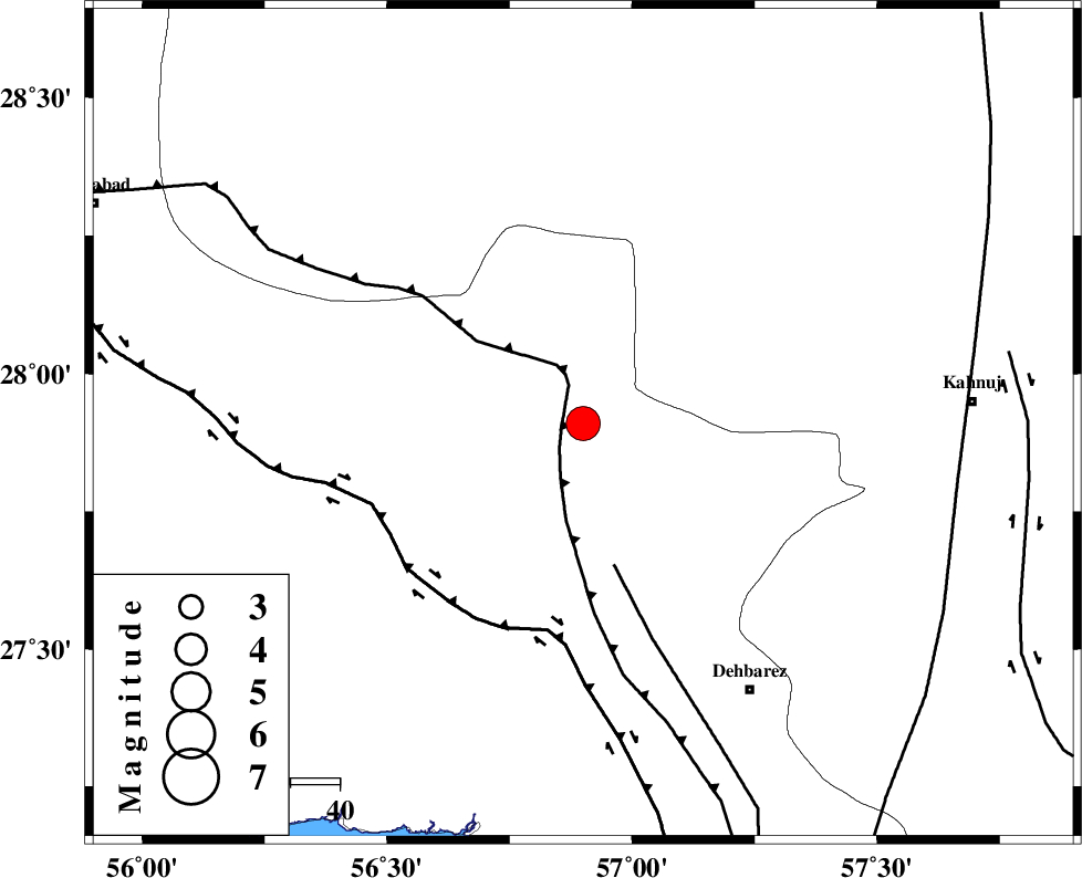 ZENDAN_MINAB_F_Z1 (Length: 183 km) , Distance to epicenter: 29 km