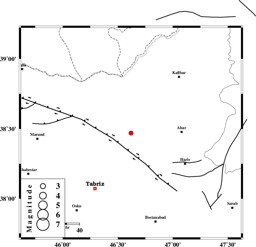 N_TABRIZ_F1 (Length: 222 km) , Distance to epicenter: 48 km | |
