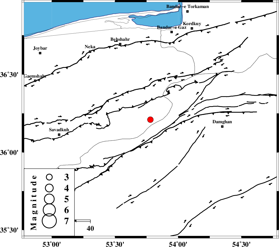 N_ALBORZ_F (Length: 360 km) , Distance to epicenter: 24 km | |