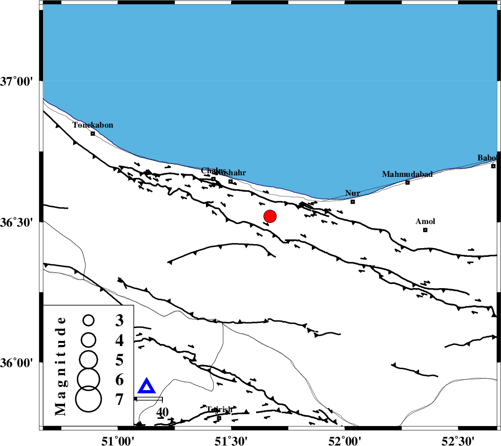 N_ALBORZ_F (Length: 360 km) , Distance to epicenter: 7 km | |