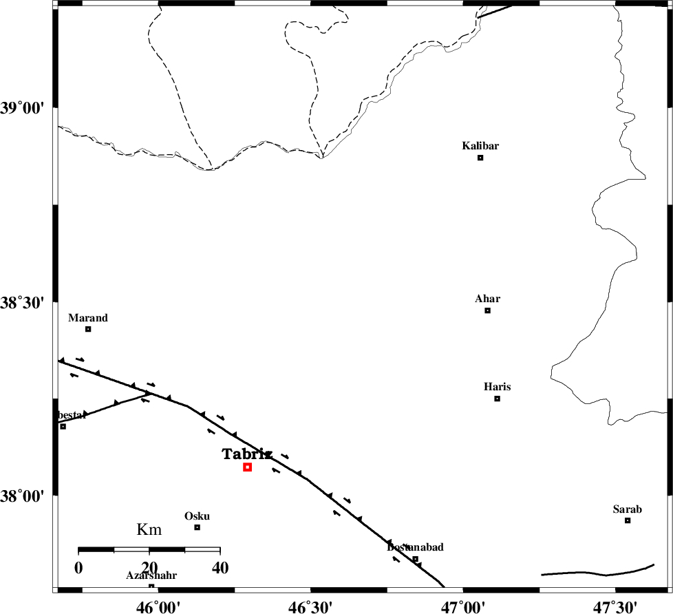N_TABRIZ_F1 (Length: 222 km) , Distance to epicenter: 54 km | |