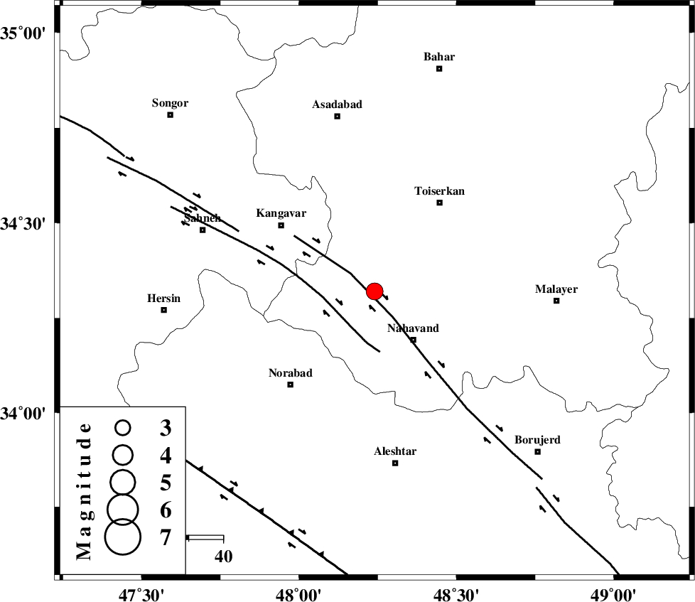 NAHAVAND_F (Length: 102 km) , Distance to epicenter: 9 km | |