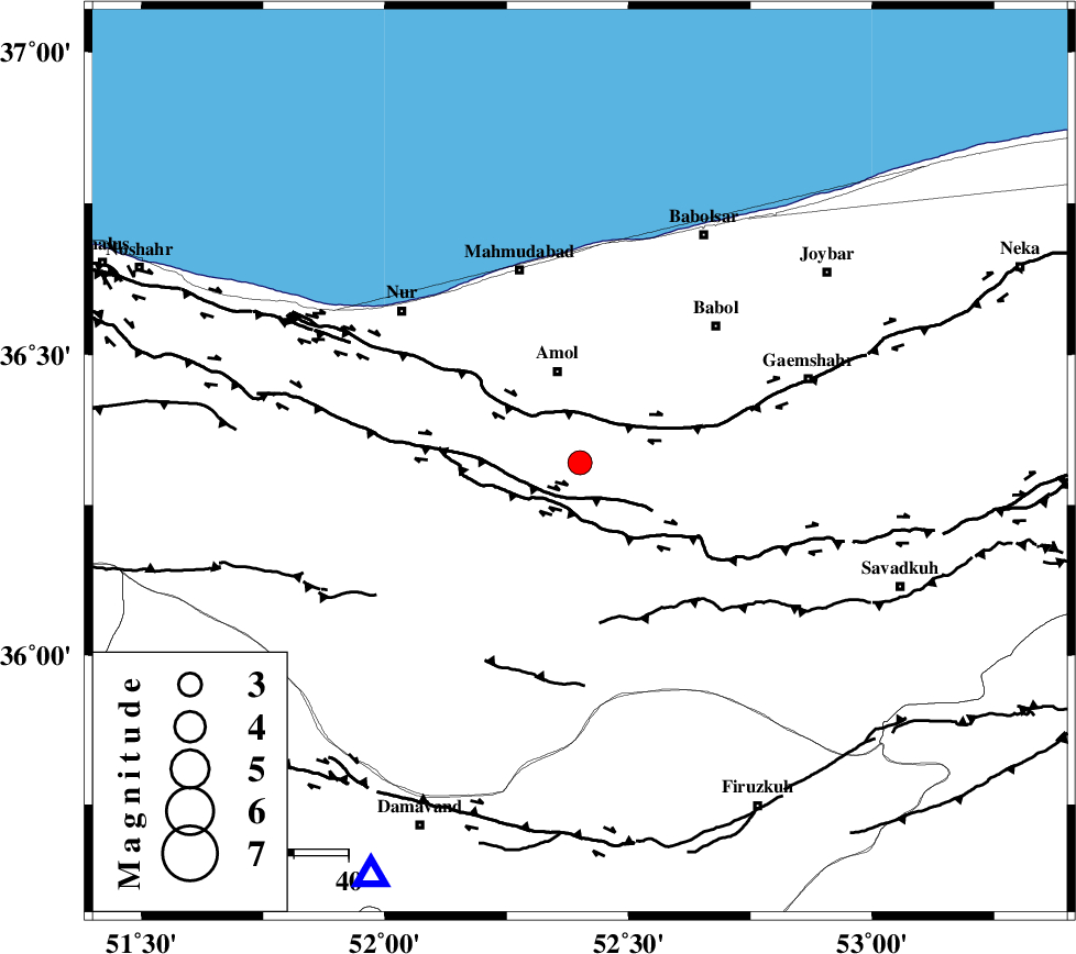 N_ALBORZ_F (Length: 360 km) , Distance to epicenter: 7 km | |