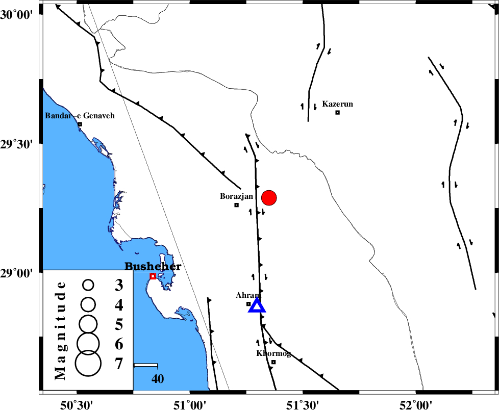 BORAZJAN_F (Length: 168 km) , Distance to epicenter: 6 km | |