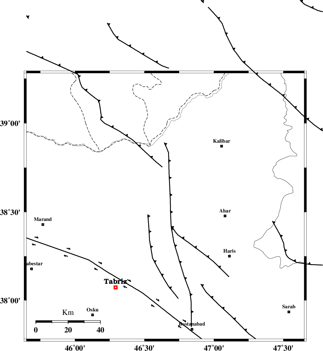 N_TABRIZ_F1 (Length: 222 km) , Distance to epicenter: 55 km | |