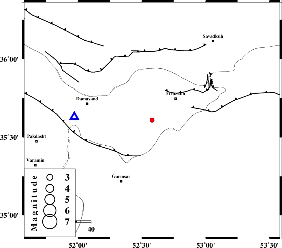 GARMSAR_F (Length: 77 km) , Distance to epicenter: 35 km | |
