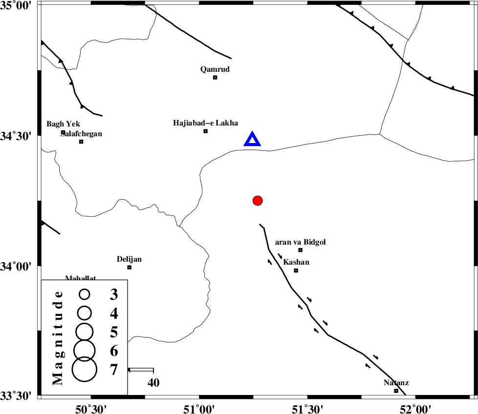 KASHAN_F (Length: 44 km) , Distance to epicenter: 10 km | |