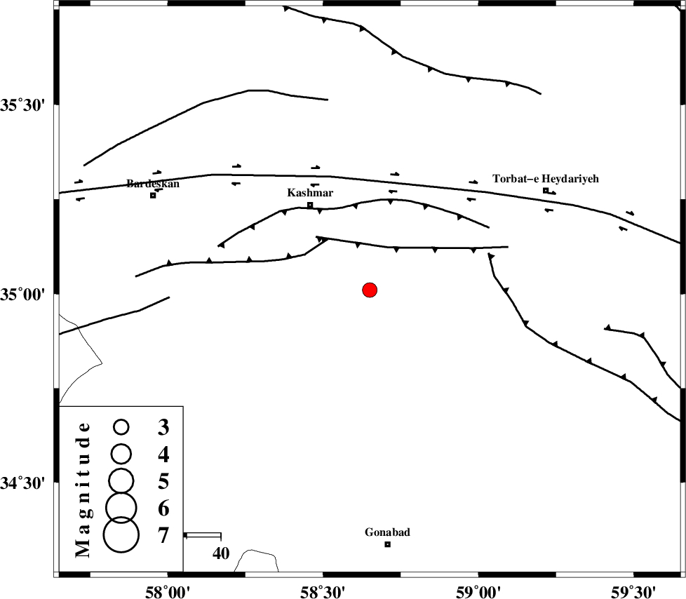 KASHMAR_F (Length: 91 km) , Distance to epicenter: 26 km | |