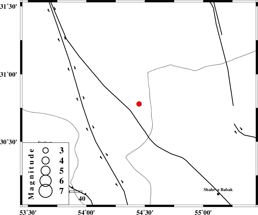 SHAHR_E_BABAK_F2 (Length: 272 km) , Distance to epicenter: 9 km | |