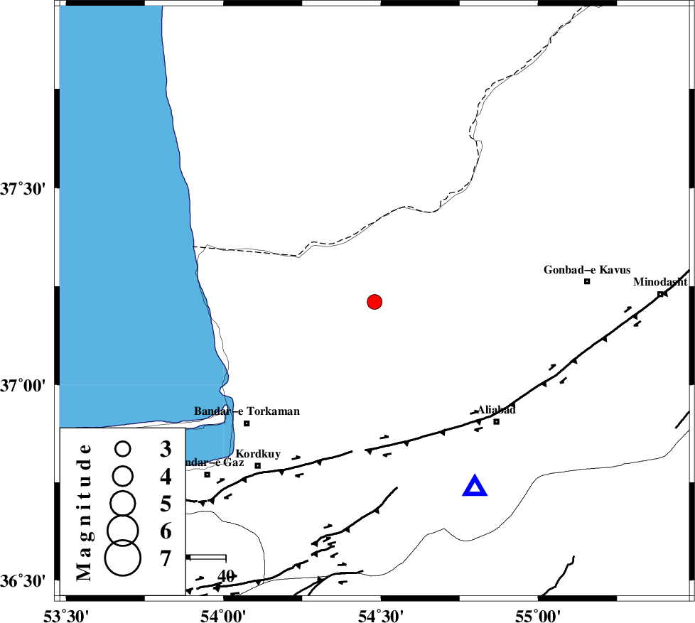 KHAZAR_F (Length: 523 km) , Distance to epicenter: 40 km | |