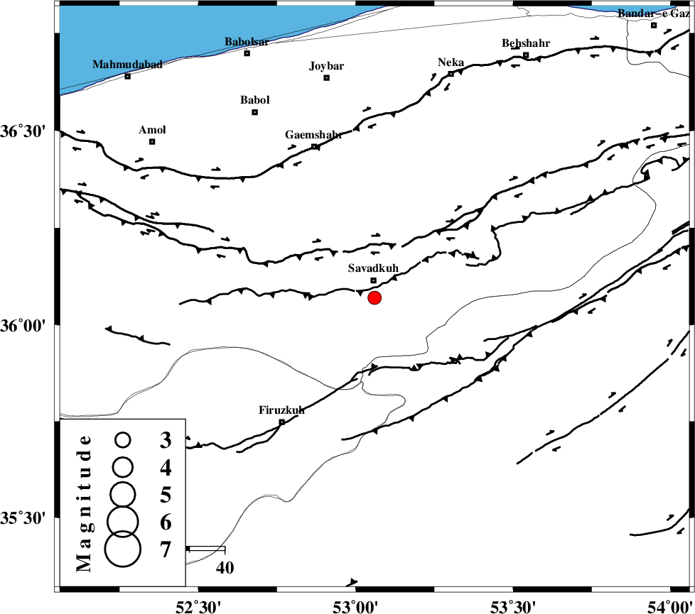 N_ALBORZ_F (Length: 360 km) , Distance to epicenter: 15 km | |