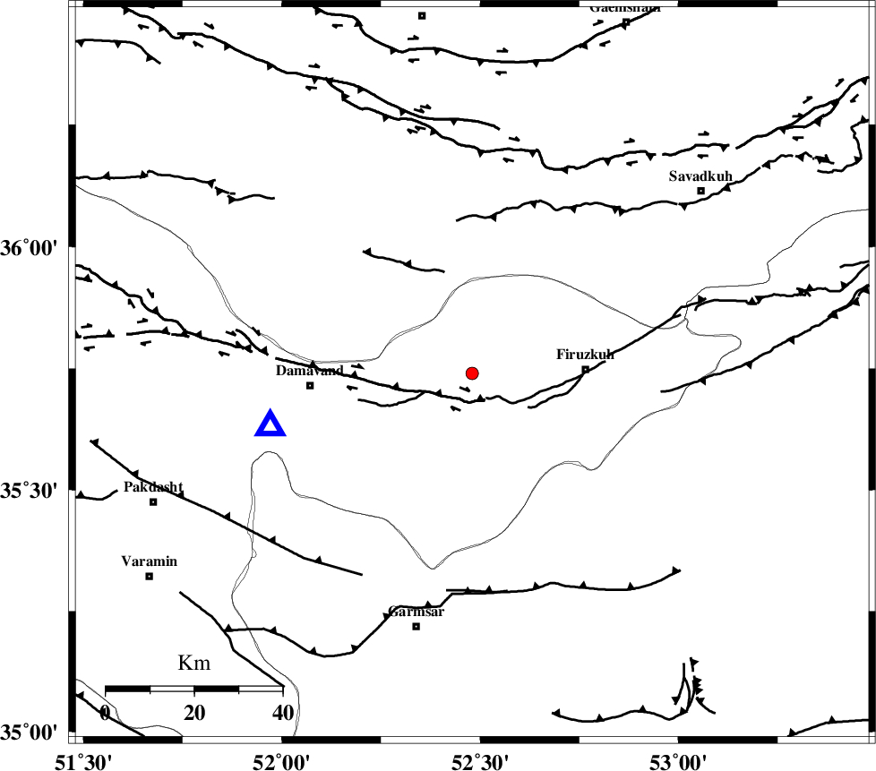 GARMSAR_F (Length: 77 km) , Distance to epicenter: 50 km | |