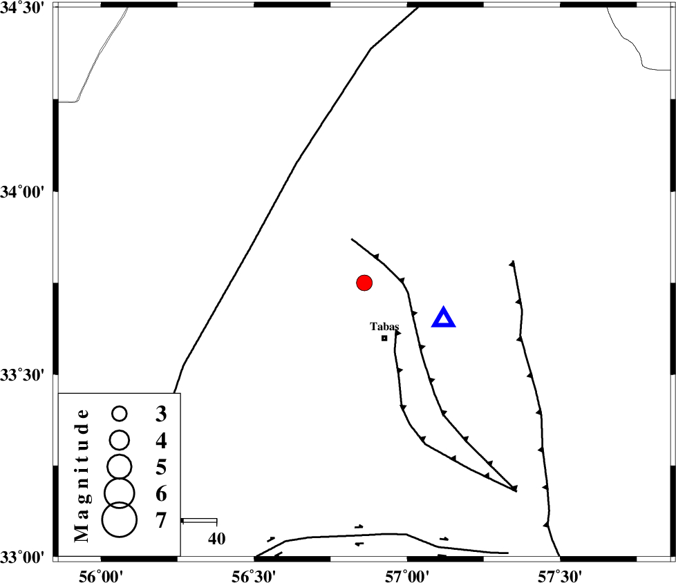 TABAS_F2 (Length: 67 km) , Distance to epicenter: 17 km | |