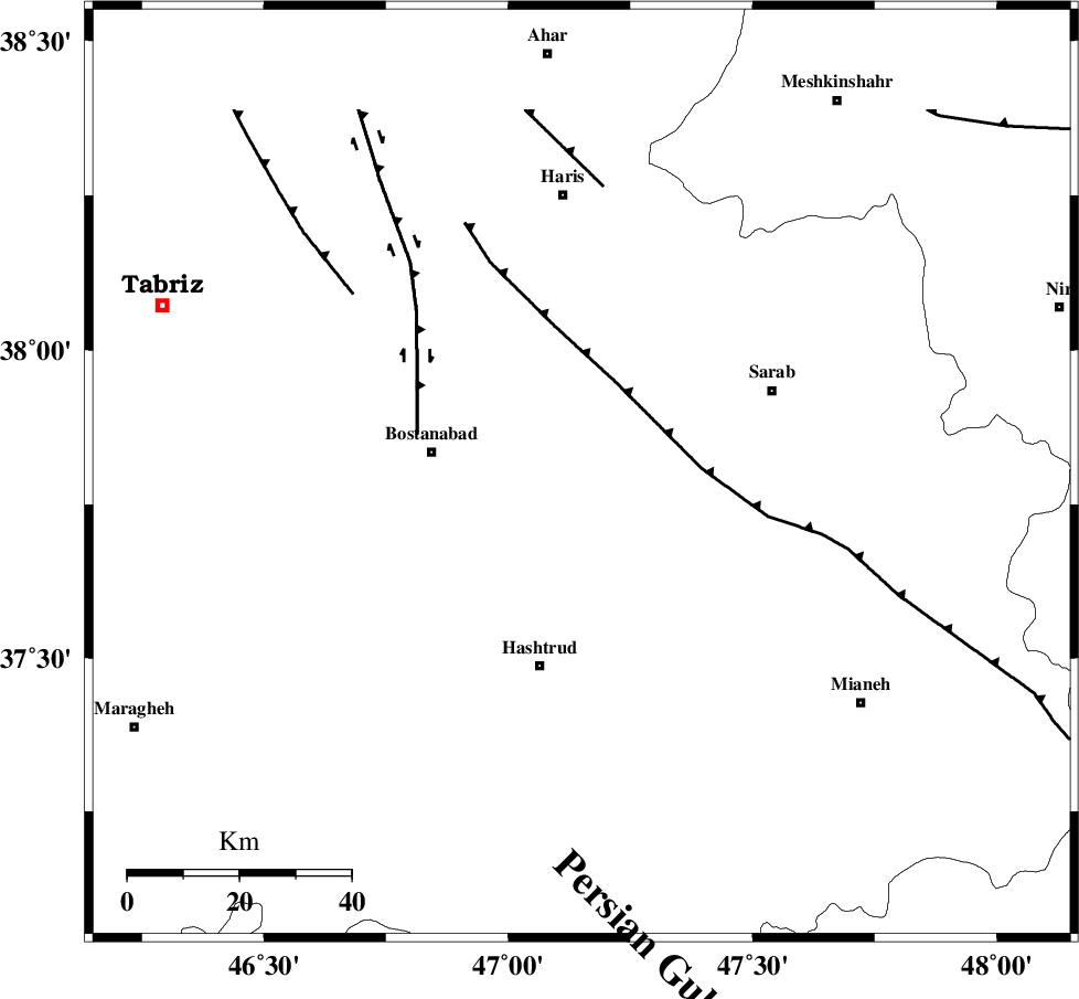 N_TABRIZ_F1 (Length: 222 km) , Distance to epicenter: 19 km | |