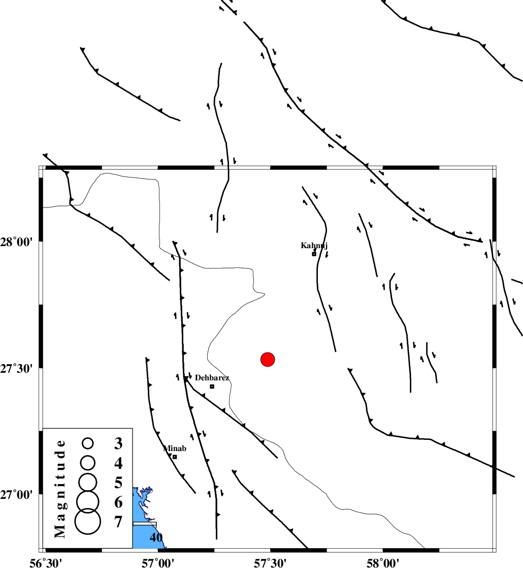ZENDAN_MINAB_F_Z1 (Length: 183 km) , Distance to epicenter: 38 km | |