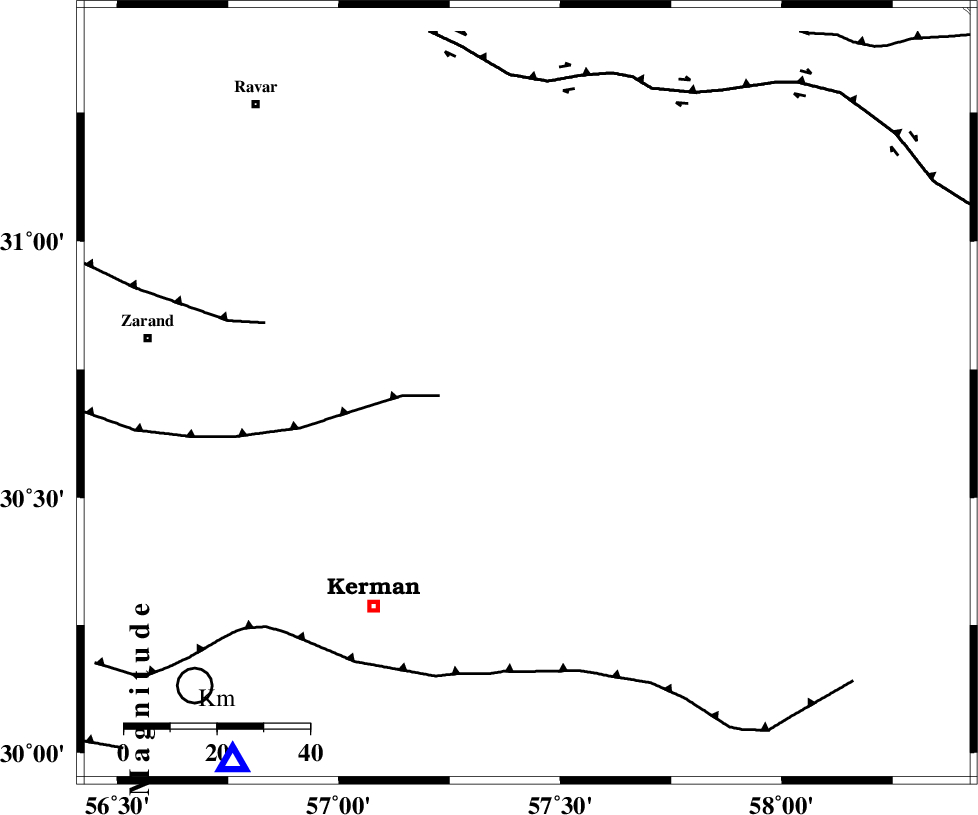 GOLBAF_SIRCH_F (Length: 114 km) , Distance to epicenter: 14 km | |