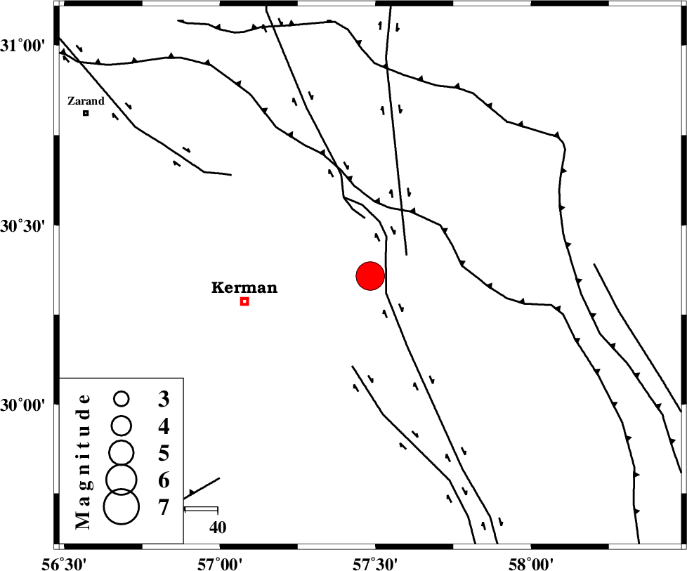 GOLBAF_SIRCH_F (Length: 114 km) , Distance to epicenter: 7 km | |