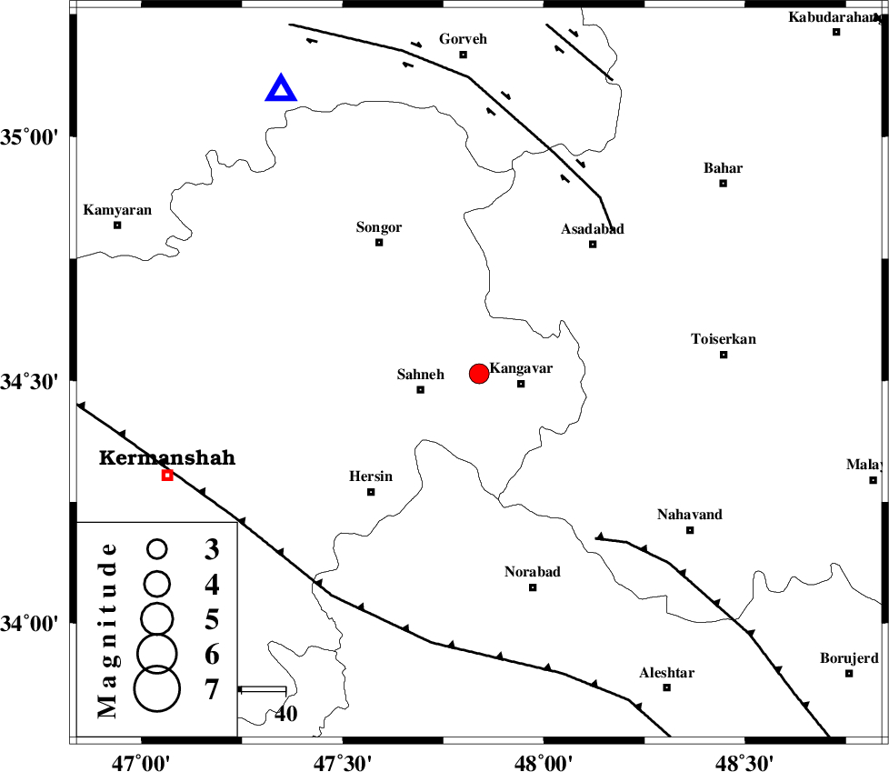 NAHAVAND_F (Length: 102 km) , Distance to epicenter: 14 km | |