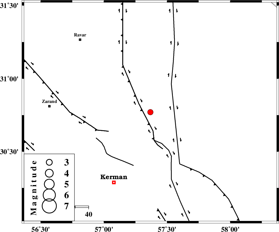 GOLBAF_SIRCH_F (Length: 114 km) , Distance to epicenter: 22 km | |