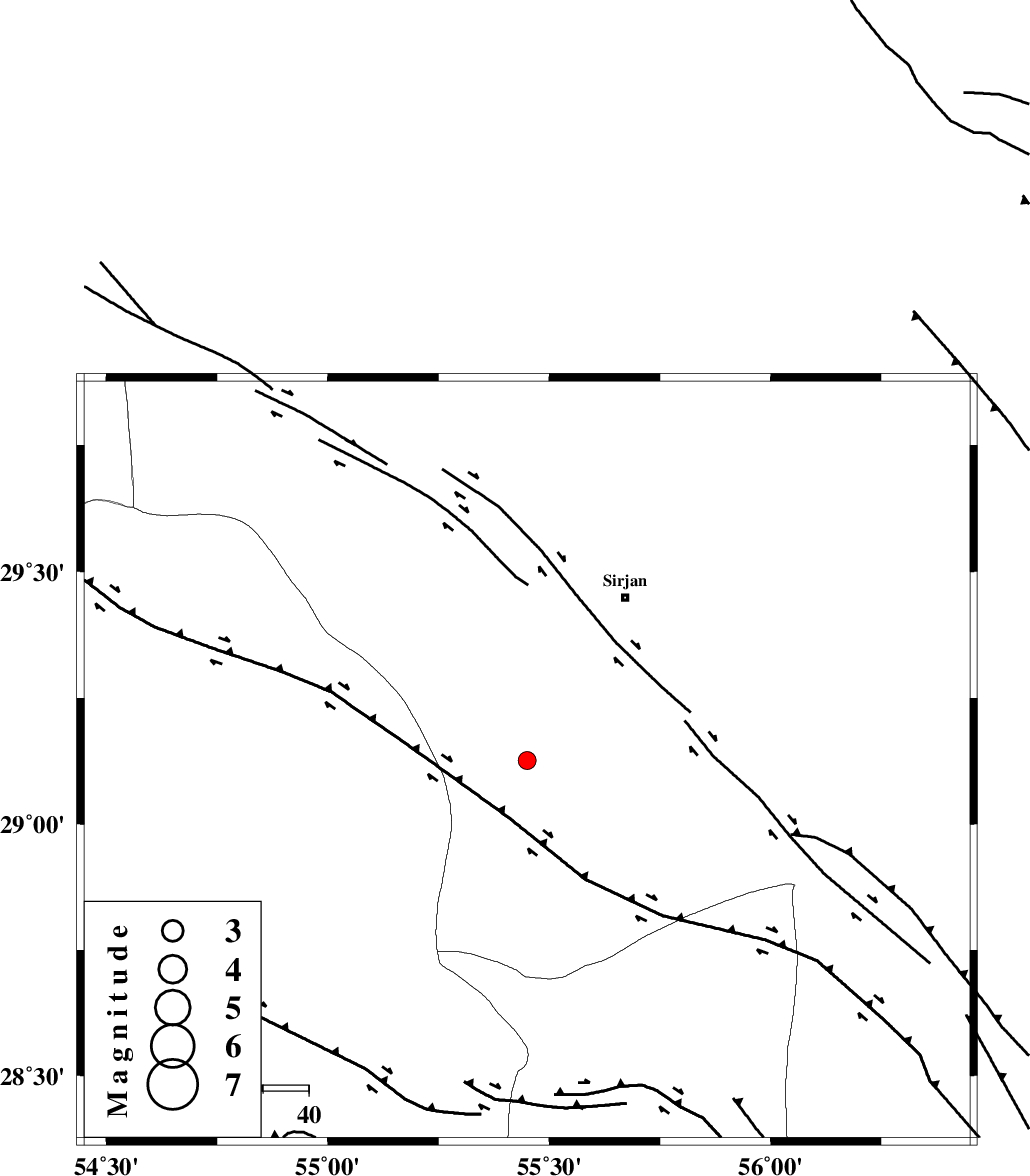 SHAHR_E_BABAK_F1 (Length: 392 km) , Distance to epicenter: 54 km | |