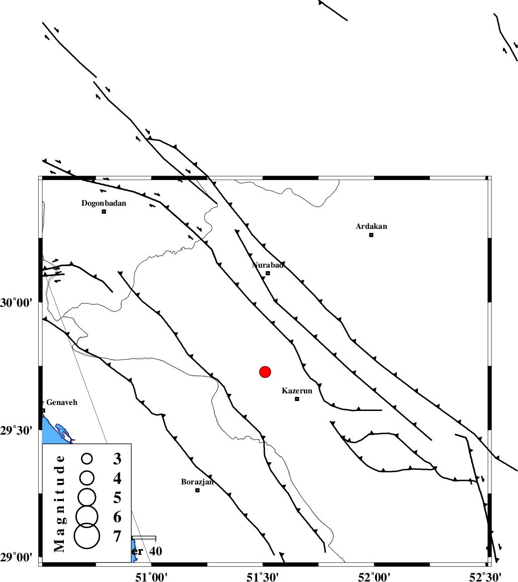 KAZERUN_F (Length: 96 km) , Distance to epicenter: 3 km | |