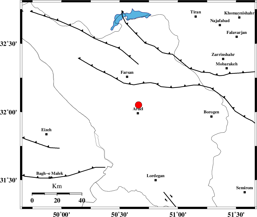 ZARDKUH_F (Length: 139 km) , Distance to epicenter: 8 km | |