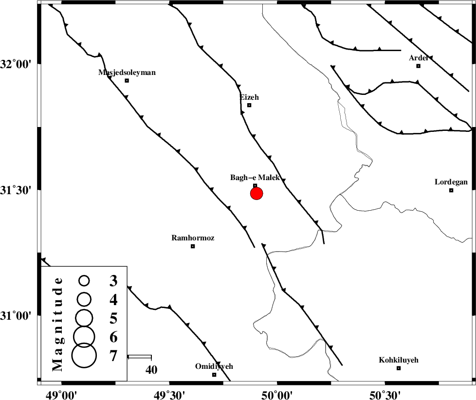 DEZFUL_EMBAYMENT (Length: 228 km) , Distance to epicenter: 14 km | |