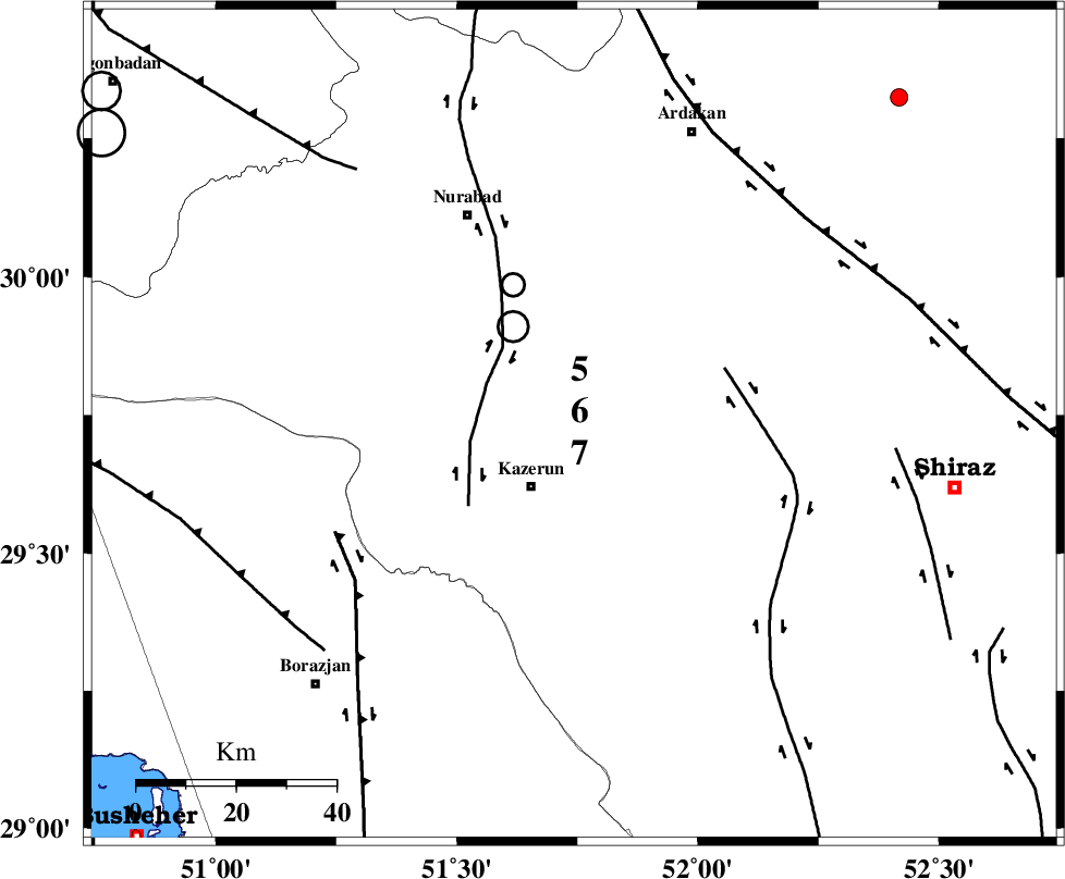 KAZERUN_F (Length: 96 km) , Distance to epicenter: 19 km | |
